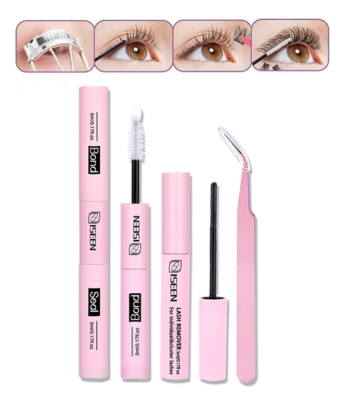 • Sellador 🔒: producto clave para prolongar la duración de las extensiones. Sella el adhesivo, reduce la sensación pegajosa y ayuda a proteger las pestañas frente a factores externos como la humedad o el calor.