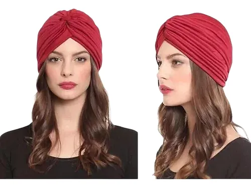 Turbantes Oncológicos Clasicos De Lycra Liso Alopecia Moda – Rojo